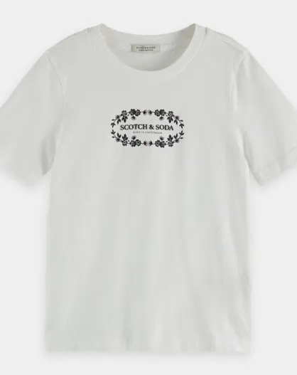 T-Shirt en Coton imprimé siglé et fleuri blanc