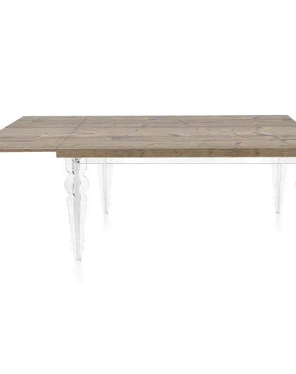 Table Maulabile transparent/bois - 155/255x90x75 cm