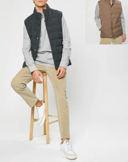 Doudoune Réversible en Laine mélangée gris/marron