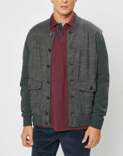 Blouson 100% Laine Tricot imprimé pied-de-poule gris/marron