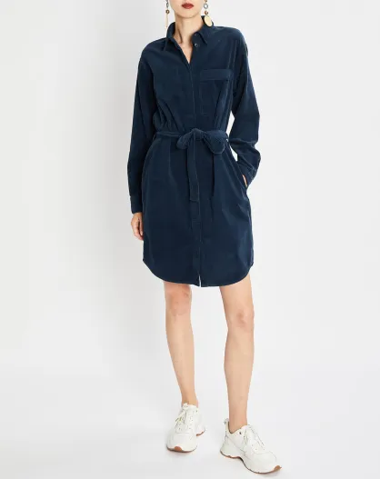 Robe Chemise en Velours côtelé ceinturé bleu marine
