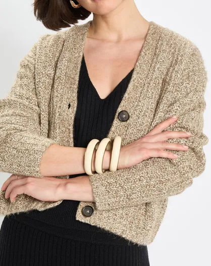 Gilet en Coton, Laine & Alpaga mélangés grosse maille chiné marron
