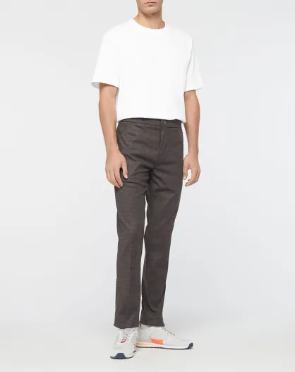Pantalon Chino en Flanelle Tailorded imprimé pied-de-poule marron