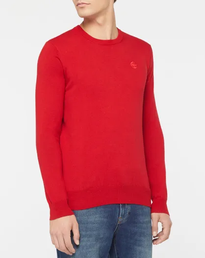 Pull en Coton Bio & Laine col rond rouge