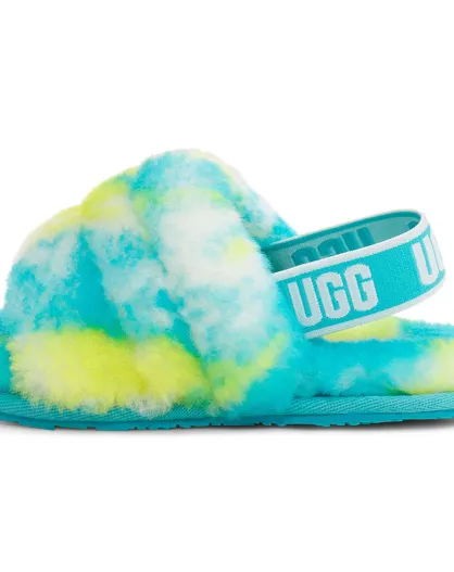 Sandales chaussons en Peau de Mouton Fluff Slide Marble bleu/jaune