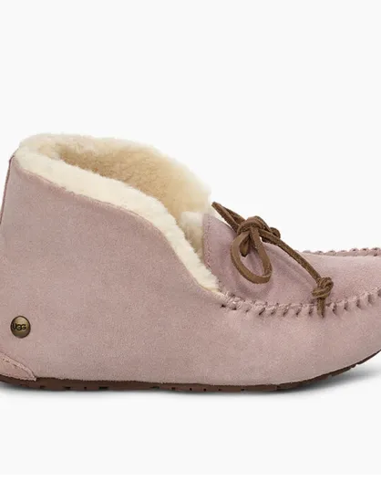 Chaussons fourrés Laine en Velours de Cuir Alena roses