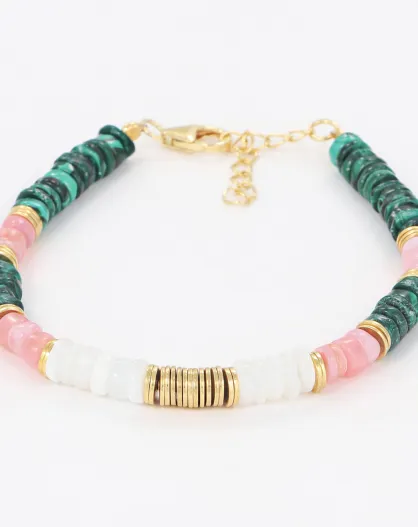 Bracelet Necalli en Malachite, Opale rose & Opale blanche