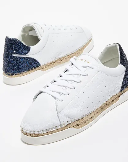 Baskets espadrilles en Cuir Lancry glitter blanc/bleu