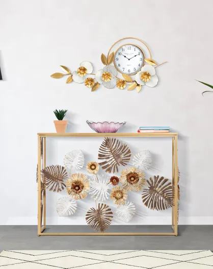 Console en métal avec plateau en verre Glam multicolore - 113x40x80 cm