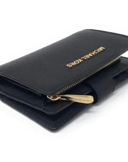 Portefeuille en Cuir medium Jet Set Travel noir - 13.5x9x3.5 cm