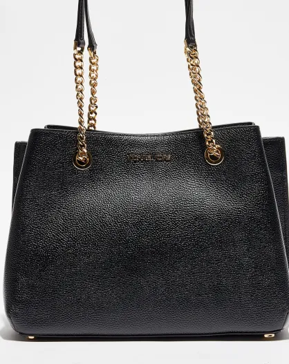 Sac porté épaule en Cuir large Teagen noir - 30x14x21 cm
