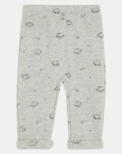Jogging en Coton molleton bio mélangé imprimé gris chiné