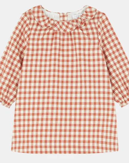 Robe en Coton bio Apara à carreaux blanc/rouge