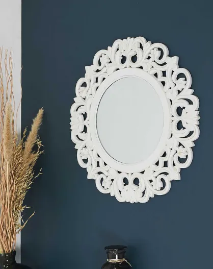 Miroir en bois sculpté Charme blanc - D.60 cm
