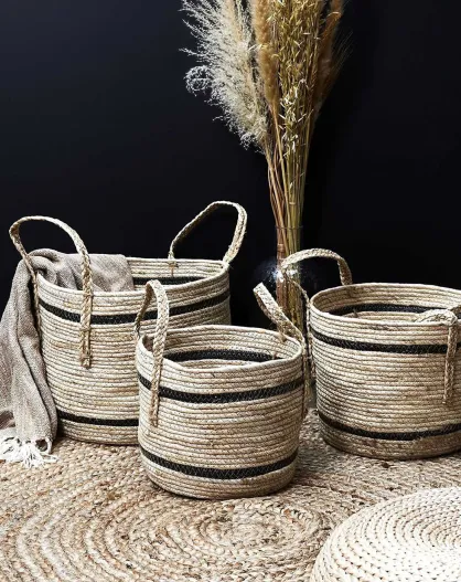 3 Paniers bicolores en fibre de maïs beiges