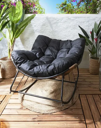 Fauteuil à bascule Tulum marron/noir - 96x73x114 cm