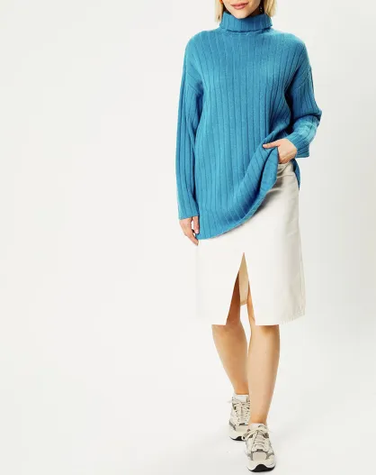 Pull en Laine & Cachemire Diva col roulé bleu