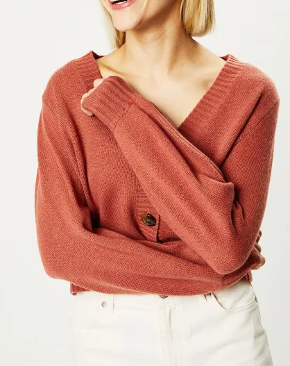 Cardigan 100% Cachemire Dimitri col V vieux rose