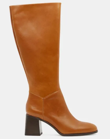 Bottes en Cuir à bout rond camel - Talon 7 cm