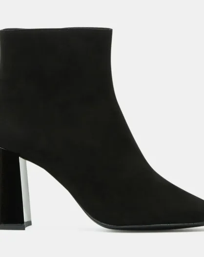 Bottines en Cuir bi-matière à bout carré noires - Talon 9 cm