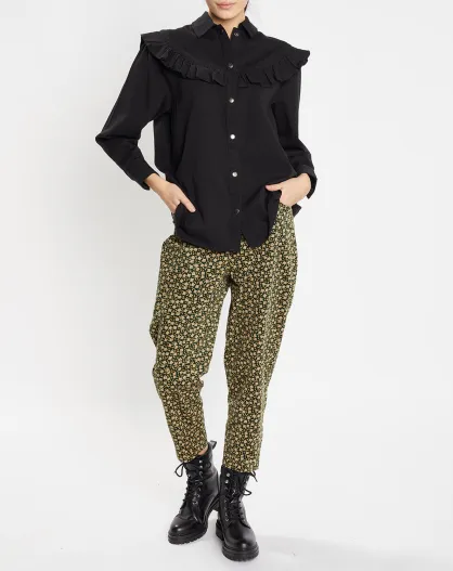 Pantalon en Velours milleraies de Coton Calvin vert/jaune