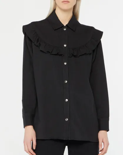 Chemise en Coton bio Candy volant en plastron noire
