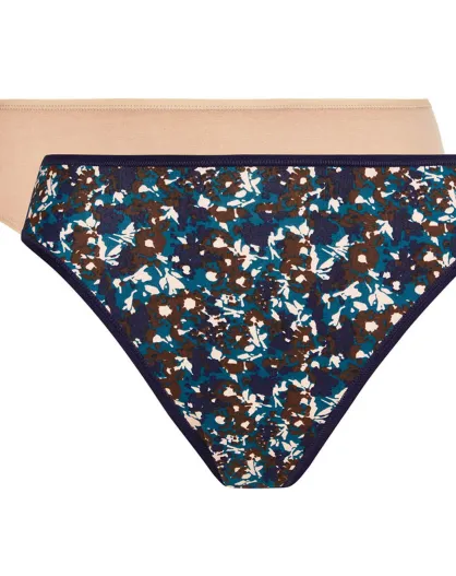 2 Culottes échancrées Essential Cotton imprimé floral beige/bleu