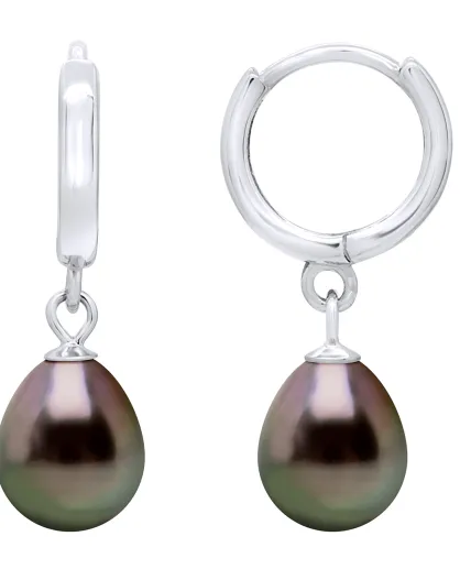 Boucles d'oreilles en Argent & Perles de Culture d'Eau Douce black tahiti