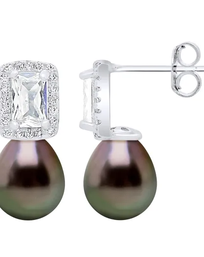 Boucles d'oreilles en Argent & Perles de Culture d'Eau Douce black tahiti