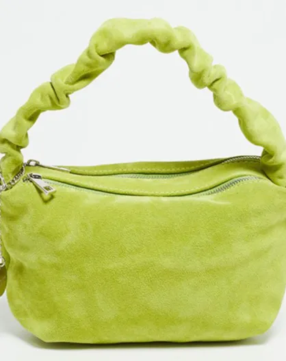 Sac à main en Velours de Cuir Belly vert clair - 28x13.5x7.5 cm