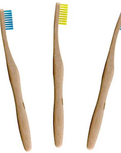 3 Brosses à dents en bambou bleu/arc-en-ciel/jaune