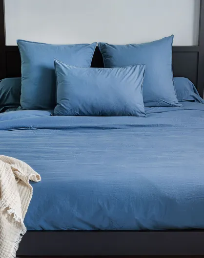 Taie d'oreiller 100% Coton lavé Lousiane bleu denim