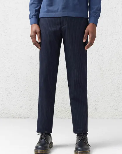 Pantalon chino slim en Laine & Coton Porths rayé marine