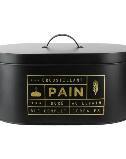 Boîte à pain en métal noir/doré - 34.5x18.5x20 cm