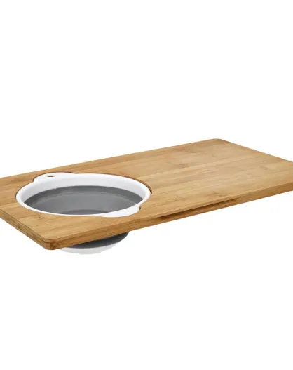 Planche à découper bambou passoire integrée marron/gris - 49.5x29.5 cm