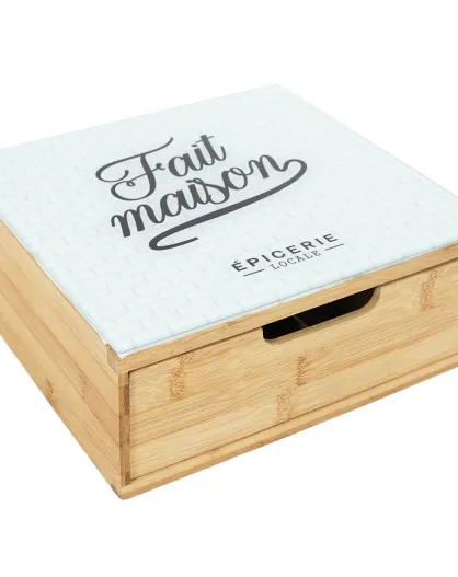Porte-capsules tiroir bois et verre brooklyn marron/blanc - 10x30x30 cm