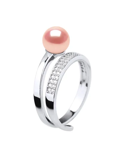 Bague Jonc Argent & Perle d'Eau Douce ronde rose