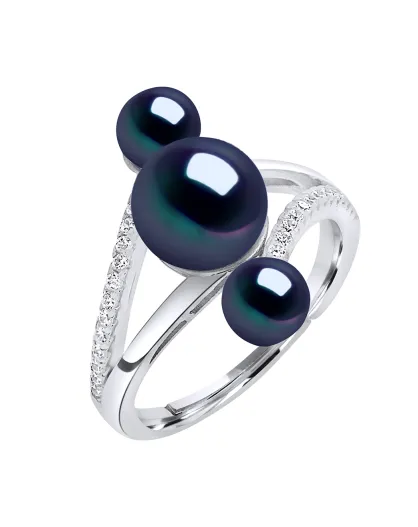 Bague Trilogy Argent & Perles d'Eau Douce boutons noires