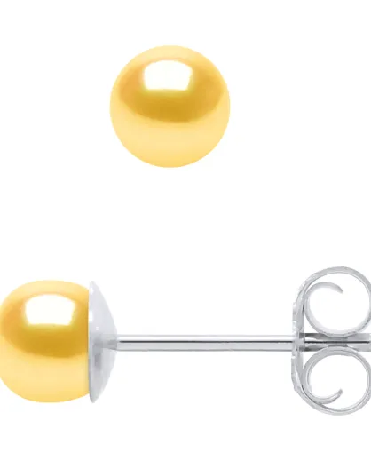 Boucles d'oreilles Argent & Perles d'Eau Douce boutons dorées