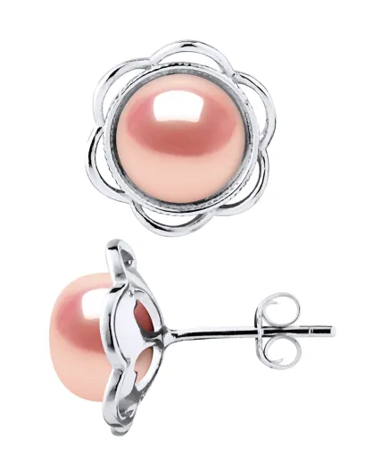 Boucles d'oreilles Argent & Perles d'Eau Douce bouton roses