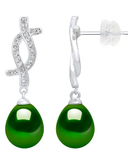 Boucles d'oreilles pendantes Argent & Perles d'Eau Douce poires vertes