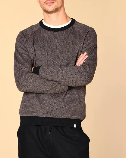 Pull en Cachemire mélangé Isidoro imprimé gris chiné/ marine/piment
