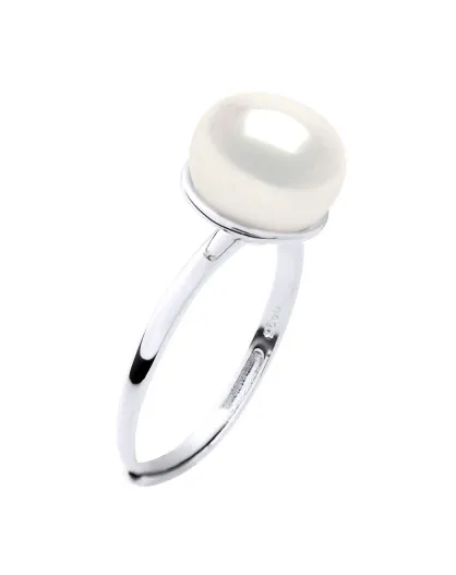 Bague Chevalière Argent Rhodié & Perle de Culture d'Eau Douce Bouton blanc naturel