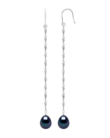 Boucles d'oreilles pendantes Argent & Perles de Culture d'Eau Douce Rondes noires