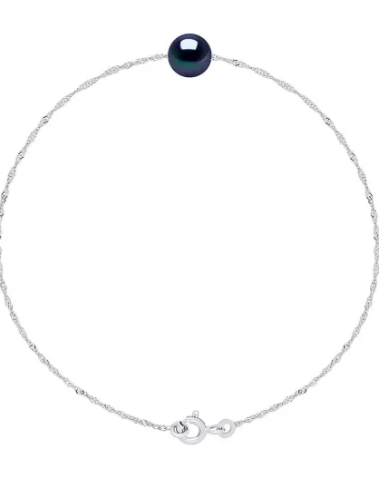 Bracelet Argent Rhodié & Perle de Culture d'Eau Douce Traversante Ronde noire