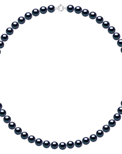 Collier Or Blanc & Perles d'Eau Douce Rondes noires