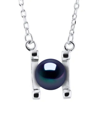 Collier Argent Rhodié & Perle de Culture d'Eau Douce Ronde noire