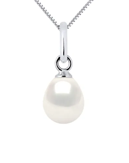 Pendentif Bélière Or Blanc & Perle de Culture d'Eau Douce Poire blanc naturel