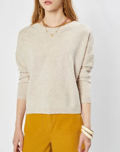 Gilet 100% Laine mérinos Col V Marianne cappuccino
