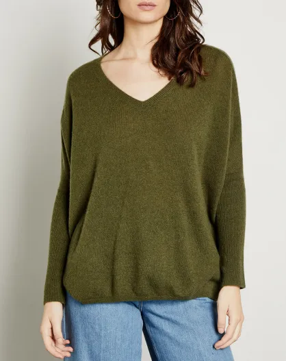 Pull poncho 100% Cachemire Axelle Col V kaki